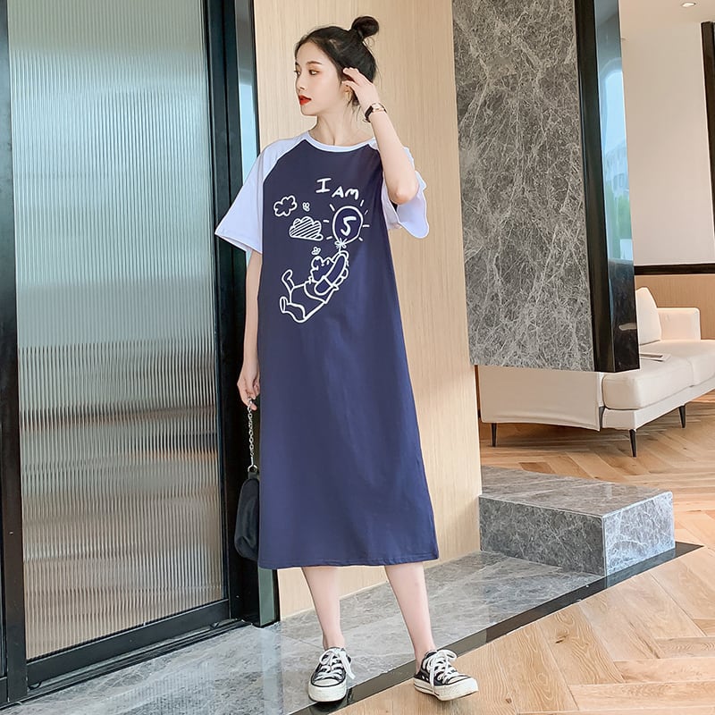 ✂ 新品 ひざ丈カットソーTシャツワンぴ スカート ✂ チュニック ワンピース レギンス スカート サロペット ローライズ スパッツ エプロンワンピ 授乳服 ロングトレーナー ジャンパースカート オールインワン ロング丈Tシャツ B1000173173 | jellyfish