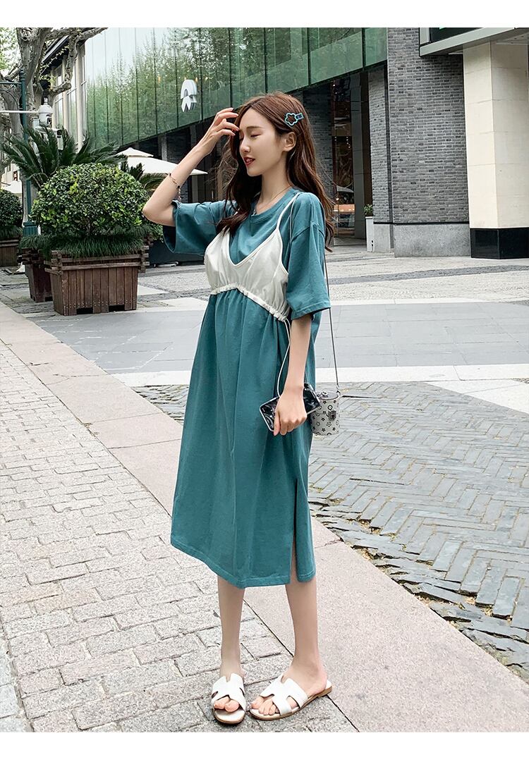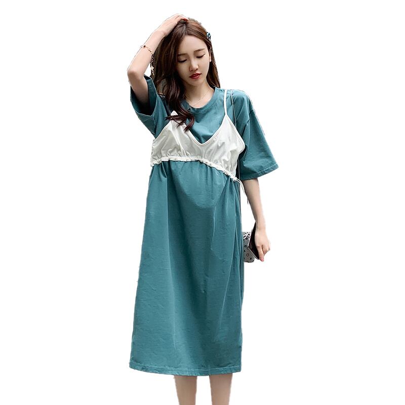 ✂ 新品 2ピースコットンマタニティワンピ 2020✂ チュニック ワンピース レギンス スカート サロペット ローライズ スパッツ エプロンワンピ 授乳服 ロングトレーナー ジャンパースカート オールインワン ロング丈Tシャツ A1001631288