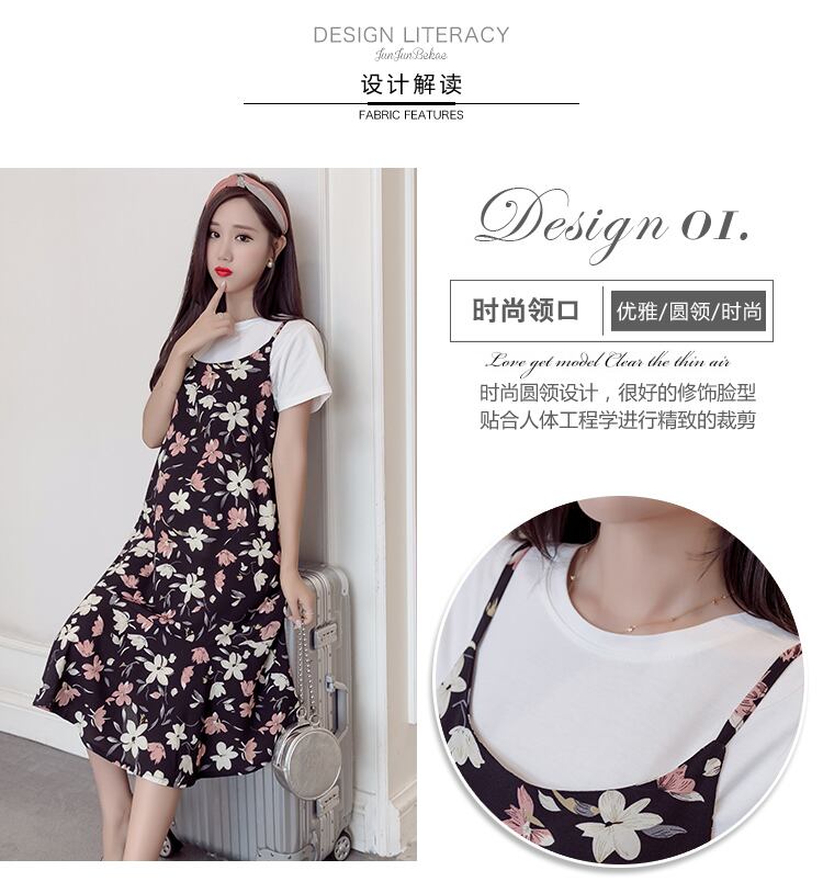✂ 新品 マタニティスーツ潮ママファッションシフォンサスペンダースカートツーピーススーツファッション妊娠中の女性の花の女性 花柄 ✂ チュニック ワンピース レギンス スカート サロペット ローライズ スパッツ エプロンワンピ 授乳服 ロングトレーナー ジャンパースカート オールインワン ロング丈Tシャツ A1006398401