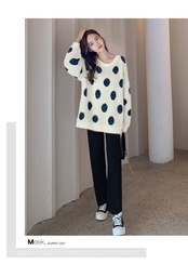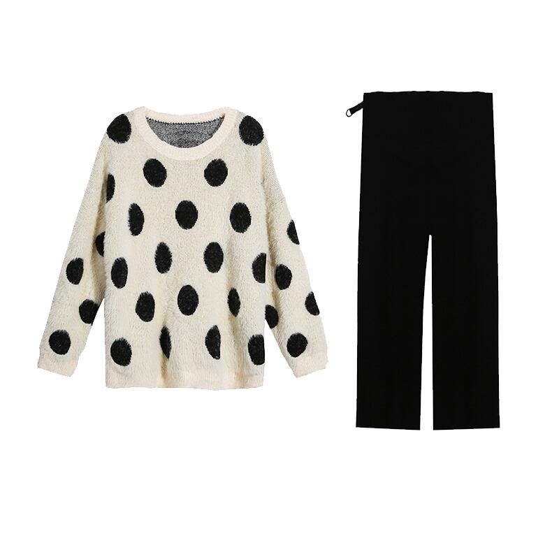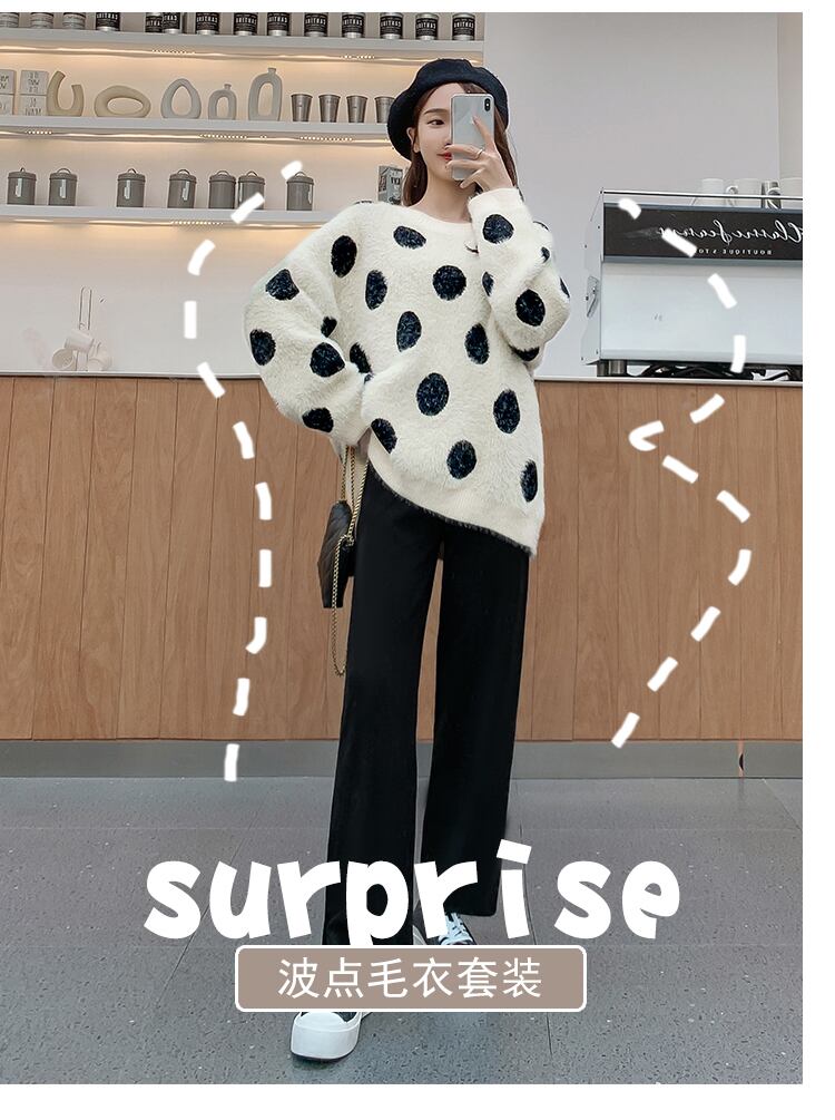 色:水玉セーター,セータートップ+ベリーリフトワイドレッグパンツ