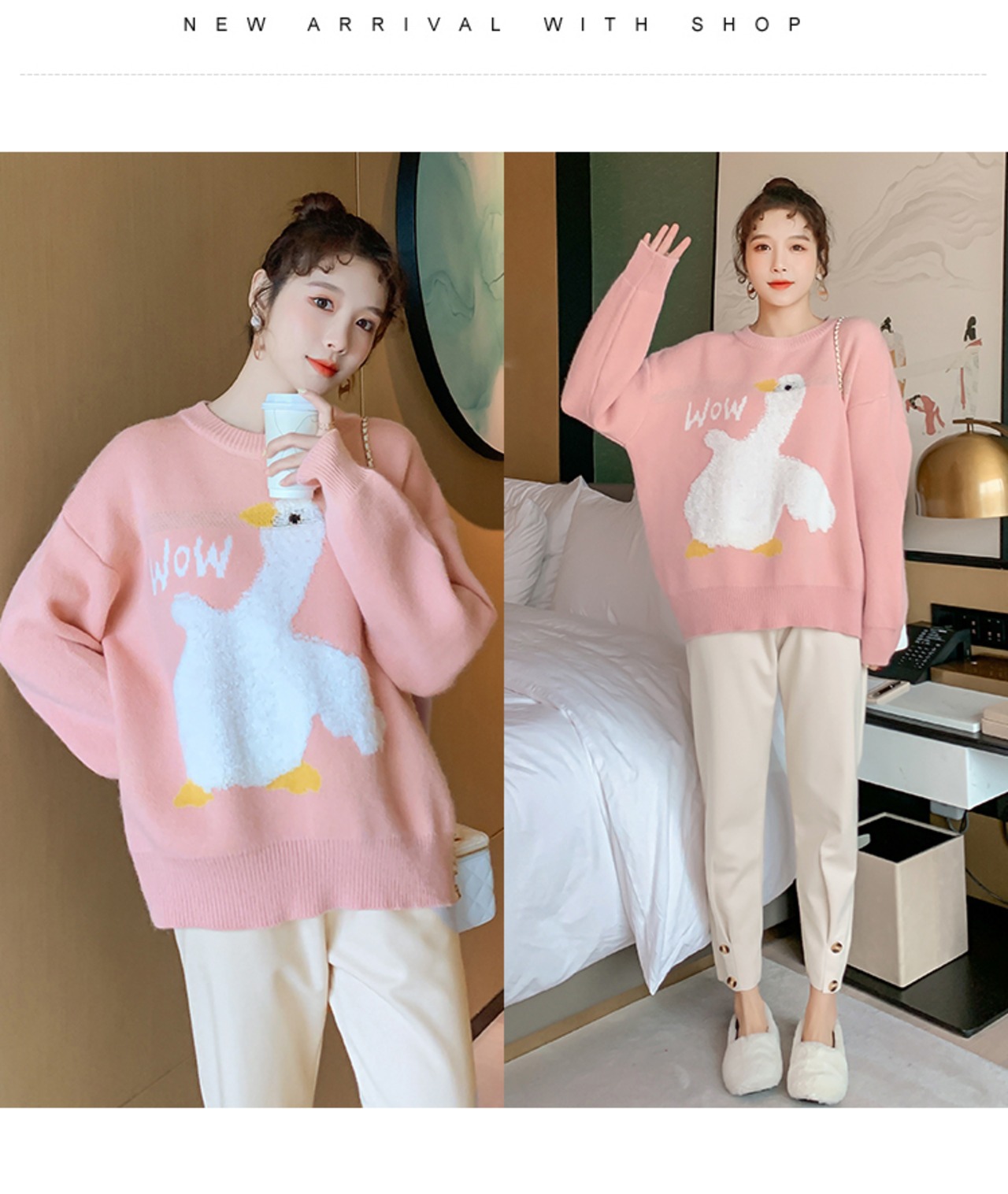 色:ピンクのシングルトップ,ブルーシングルトップ,ピンクトップアプリコットパンツ,ブルートップ+アプリコットパンツ