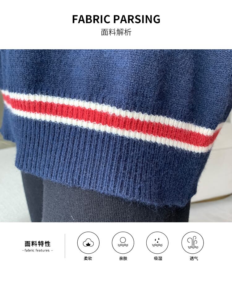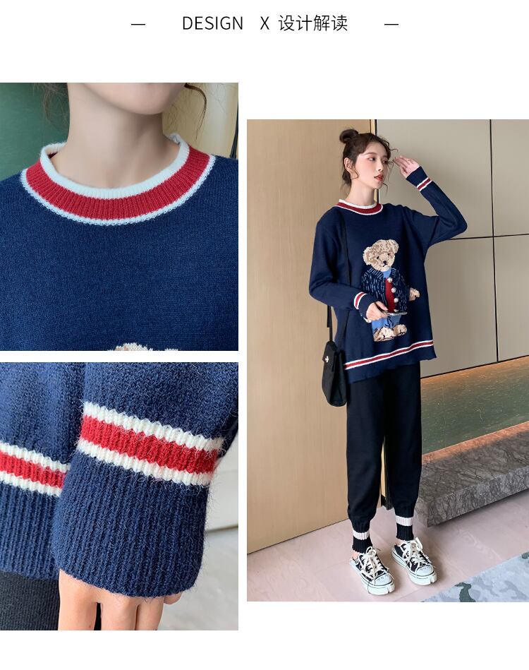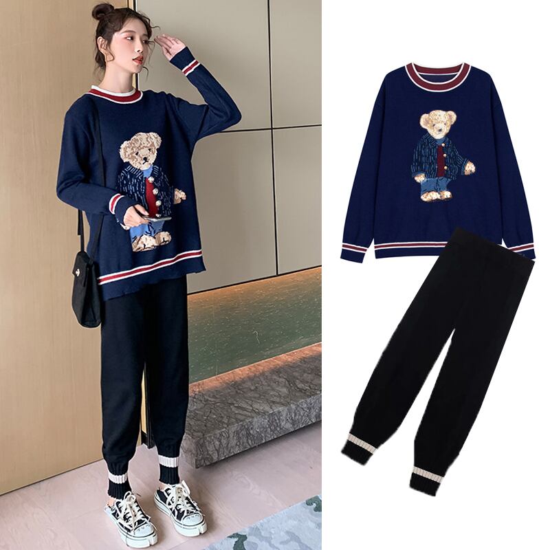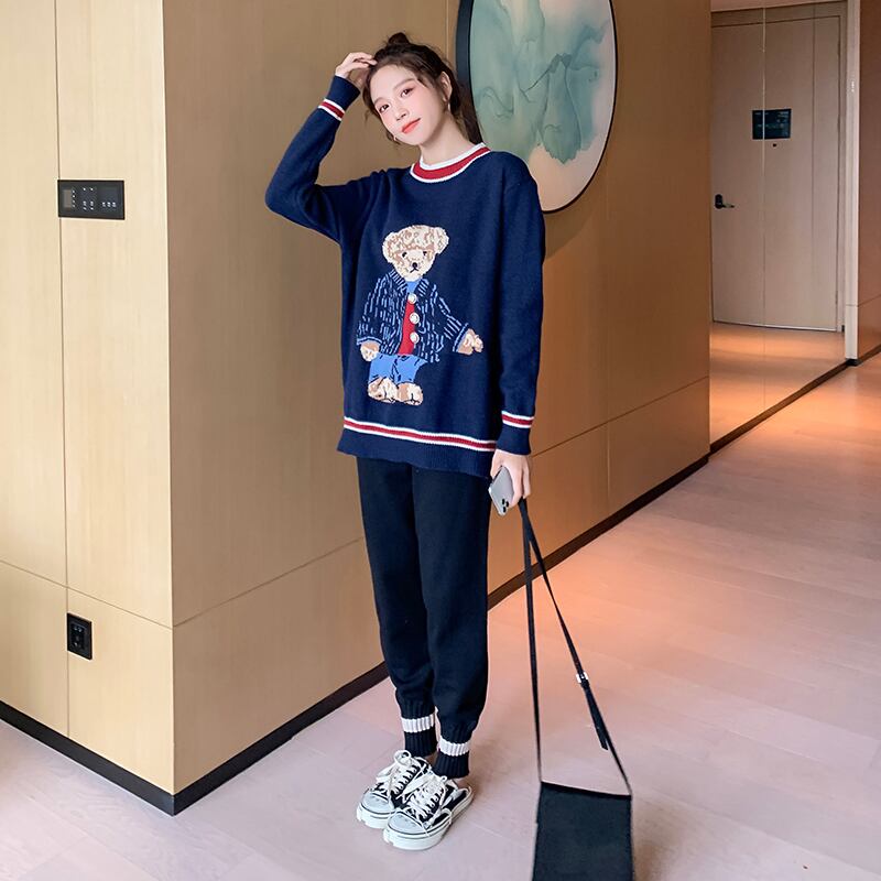 色:紺のセーター,黒いスラックス,ネイビーブルーのセーター+ブラックのカジュアルパンツ