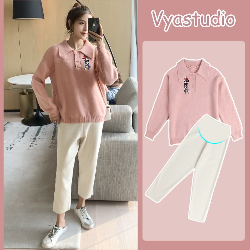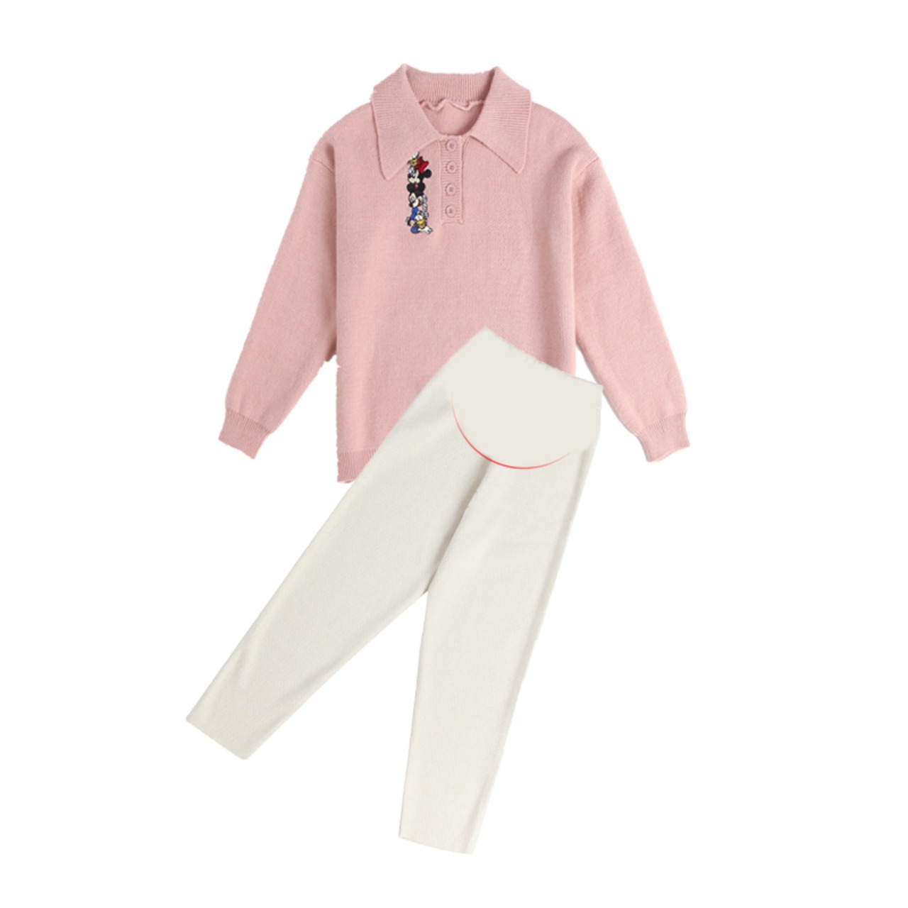 色:ピンクのセーター,ピンクのセーター+アプリコットボタン腹サポートパンツ