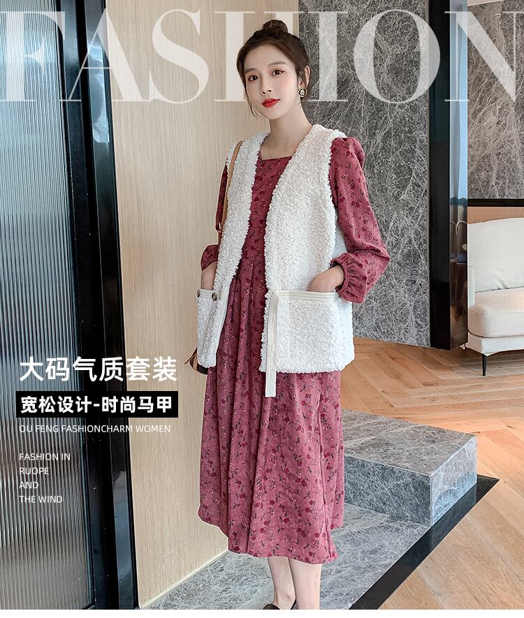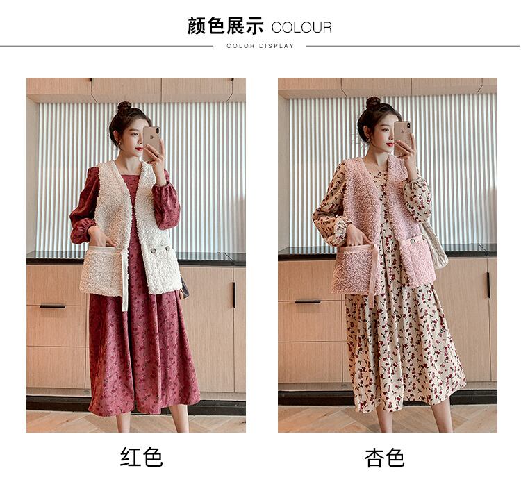 色:ローズレッドフローラル,アプリコットフローラル,ピンクのベストジャケット,アプリコットベストジャケット,ローズレッドのスカート+白いベスト,アプリコットスカート+ピンクベスト