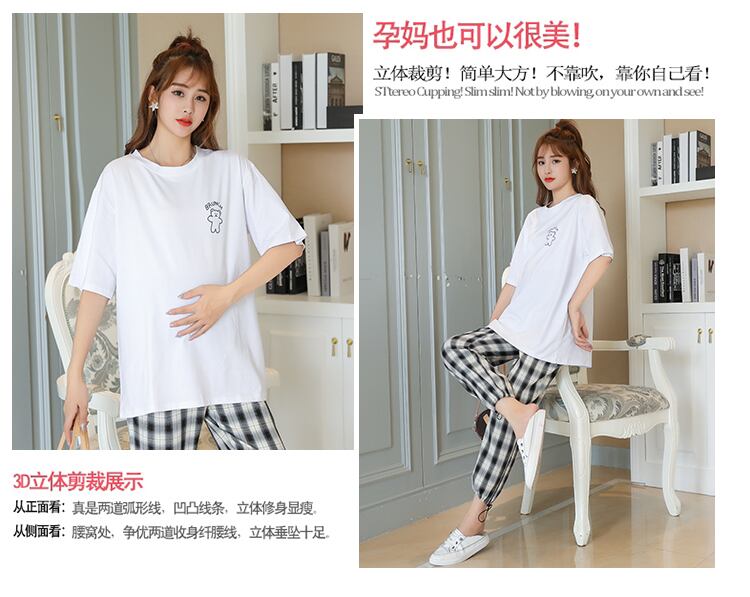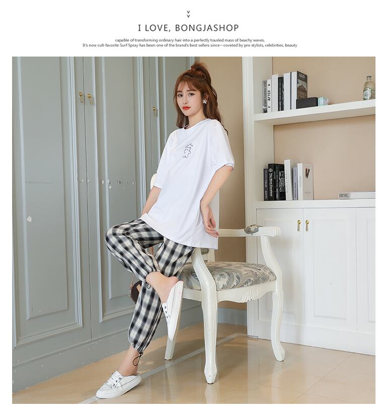 色:白いTシャツ,チェック柄サポートパンツ,ホワイトT+胃リフトパンツスーツ