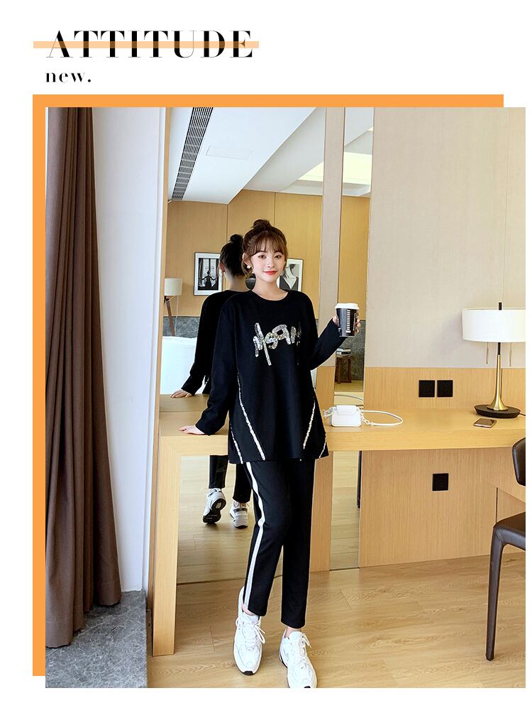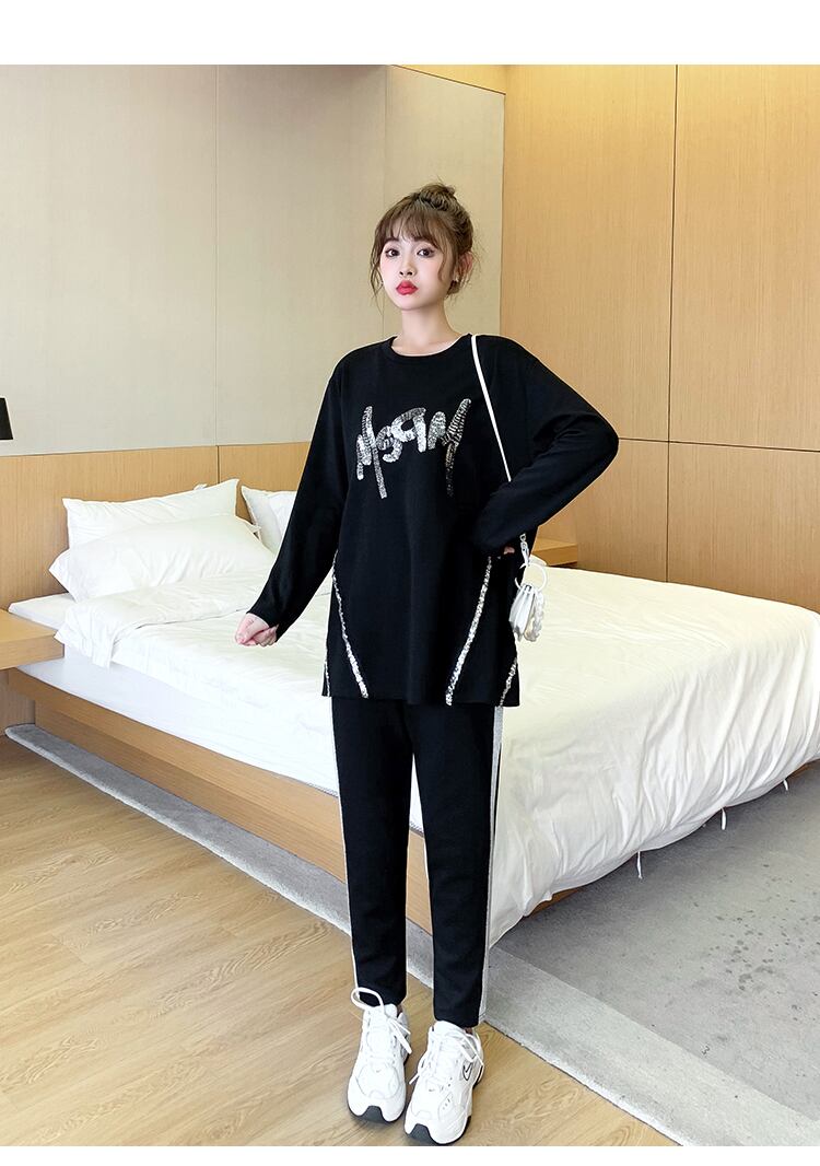 色:黒のトップ+黒の胃リフトパンツ