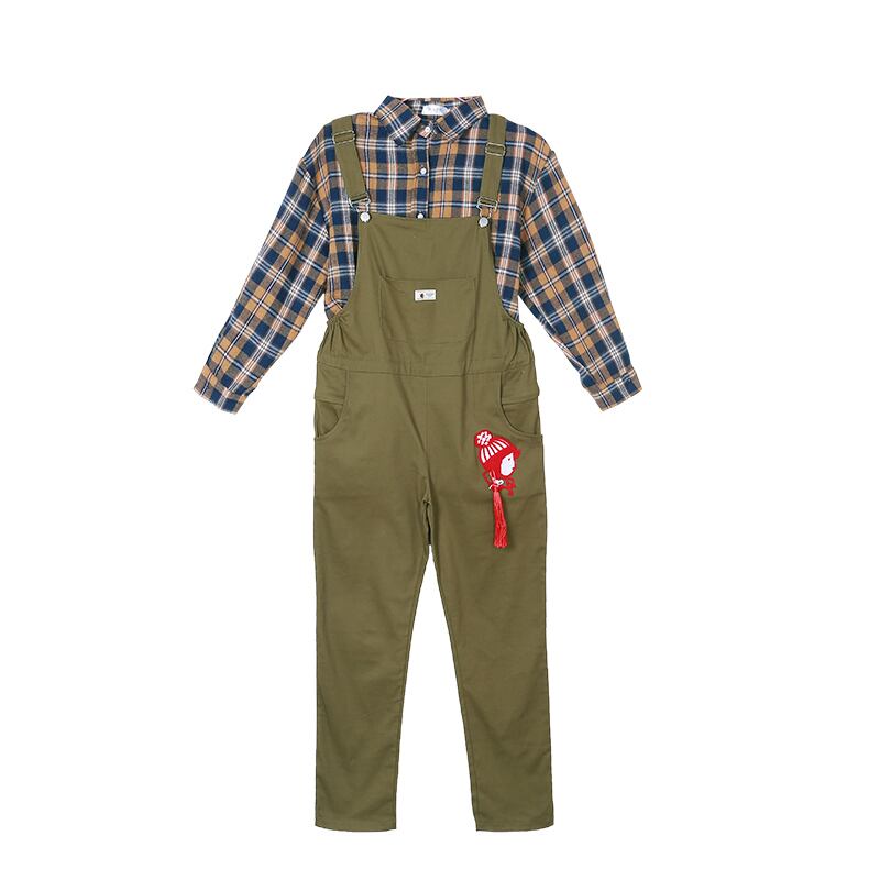 色:シャツトップ,黒,アーミーグリーン,黒のスーツ(トップ+黒のオーバーオール),アーミーグリーンスーツ(トップ+アーミーグリーンオーバーオール)