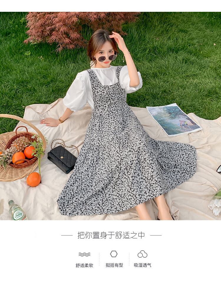 色:ランタンスリーブシャツ,フローラルスカート,スーツ(白いシャツ+サスペンダースカート)